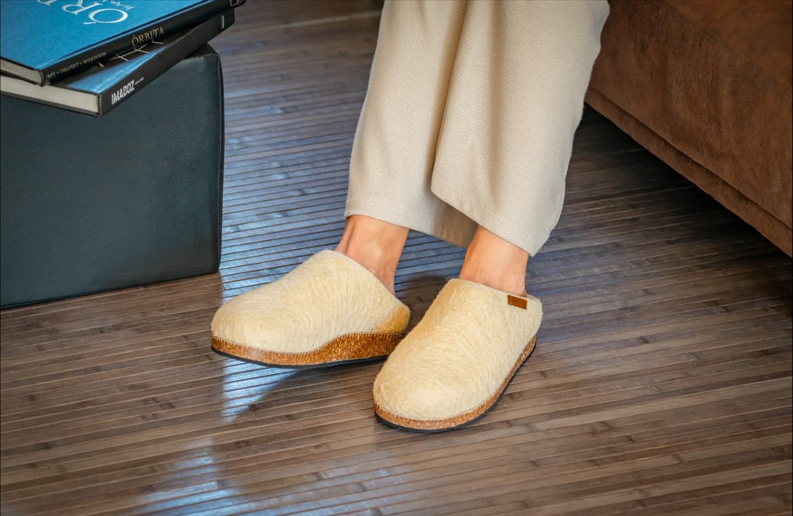 Elaboradas artesanalmente con lana merina premium, estas zapatillas de fieltro combinan transpirabilidad natural con una excepcional regulación térmica. La suela de corcho proporciona un soporte ligero y duradero. La lana merina resiste naturalmente los olores y la humedad, manteniendo tus pies frescos y secos. Perfectas para quienes buscan calzado sostenible que fusione la artesanía tradicional con un diseño funcional.